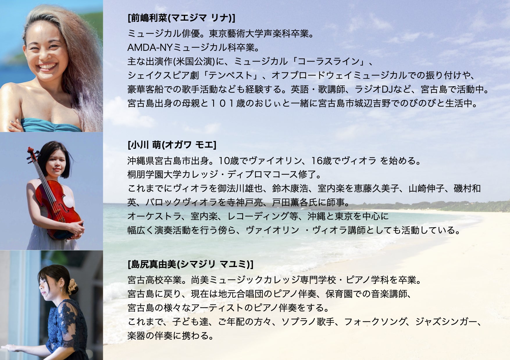宮古島で活躍する歌手・ピアニスト・ヴィオリスト・エイサー団体、俳優...