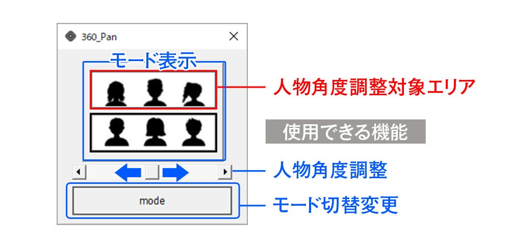 ※モード表示下の「人物角度調整」はスクロールを動かすことで、映像範囲を動かすことが可能です。