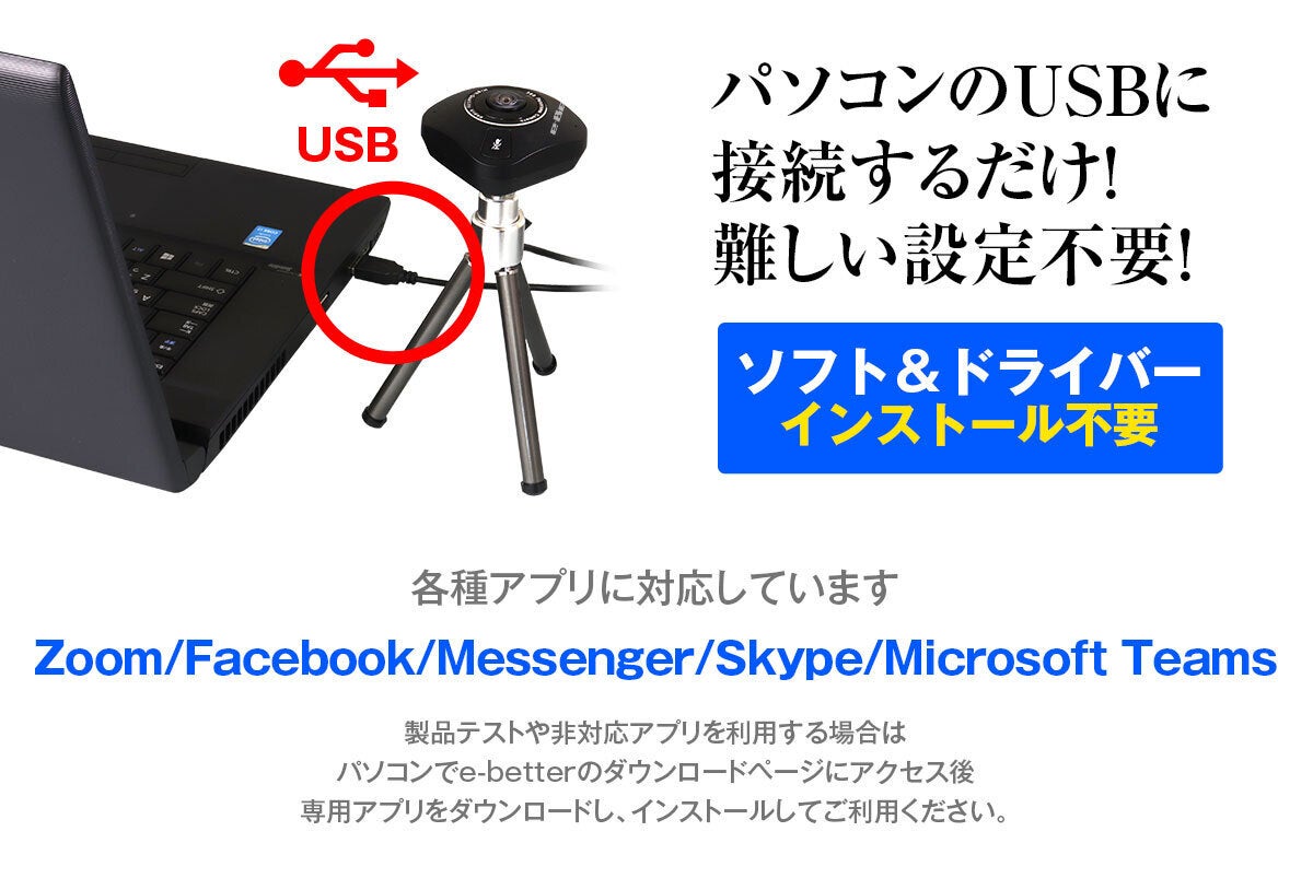 Zoom/Facebook/Messenger/Skype/Microsoft Teamsなど各種アプリに対応します。