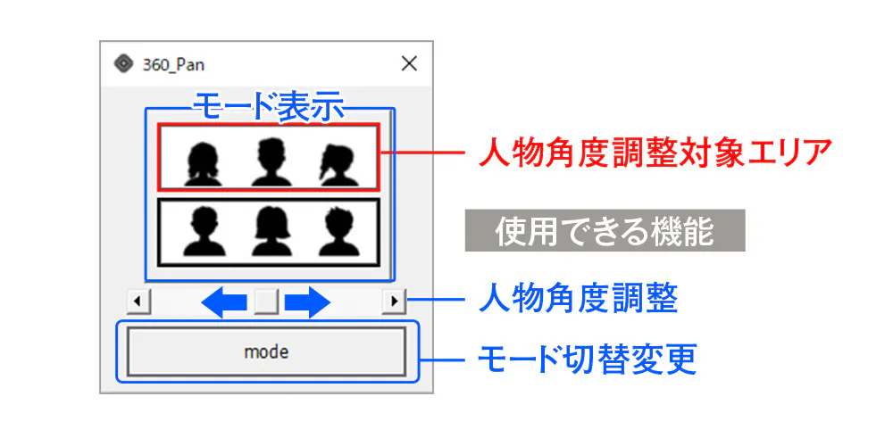 ※モード表示下の「人物角度調整」はスクロールを動かすことで、映像範囲を動かすことが可能です。