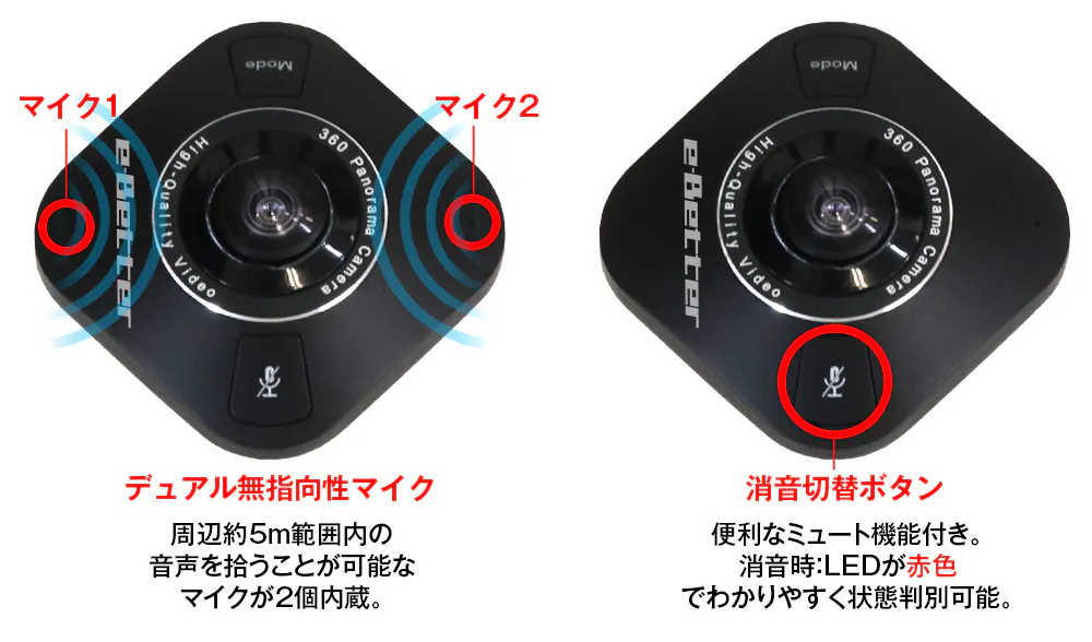 レンズ画角:水平360°