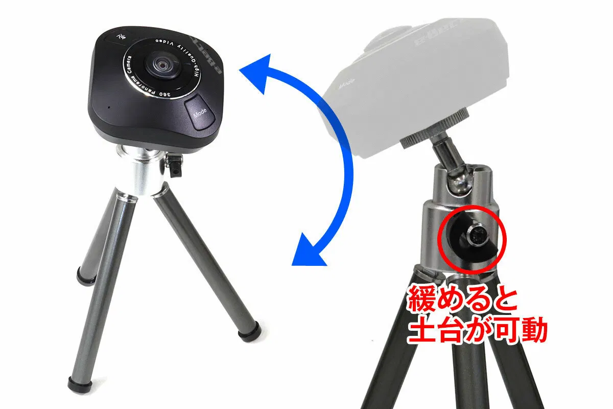 専用三脚のカメラの傾き固定ネジを緩めるとカメラ本体+カメラ土台が可動します。