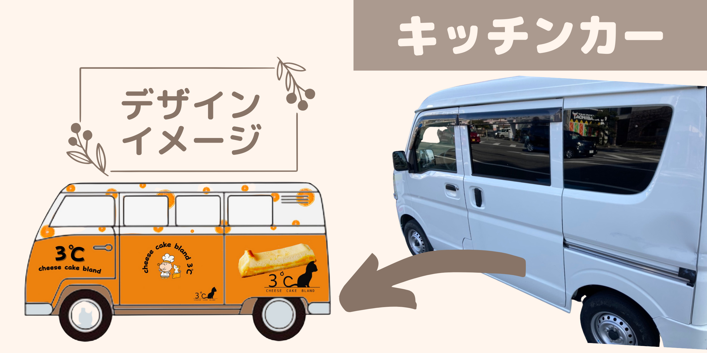 2022年1月初旬に納車、下旬にはデザインも完成し、愛媛県内では初となる「チーズケーキの移動販売」に向けて着々と準備を進められています。