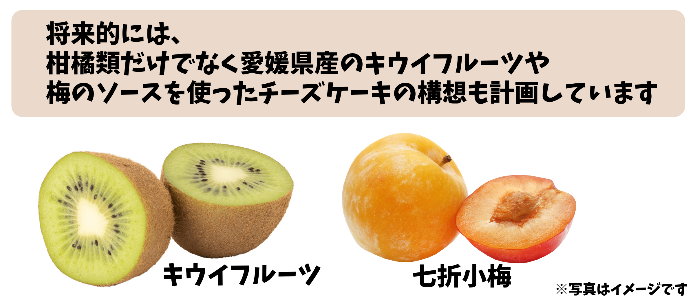 将来的には、柑橘類だけでなく愛媛県産のキウイフルーツや梅のソースを使ったチーズケーキの構想も計画しています