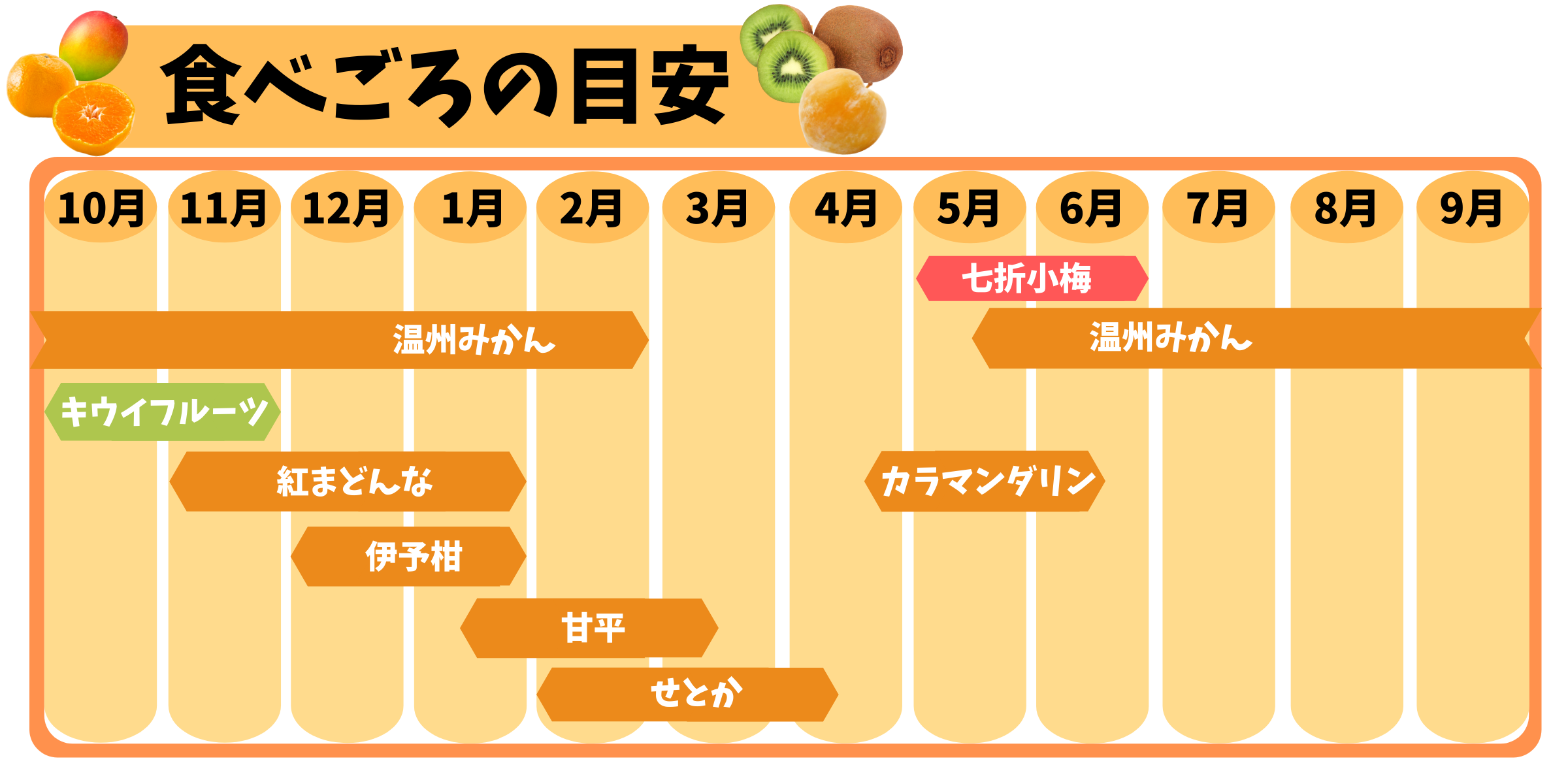 愛媛みかんは種類が多く、1年中旬の美味しいみかんが食べられます。