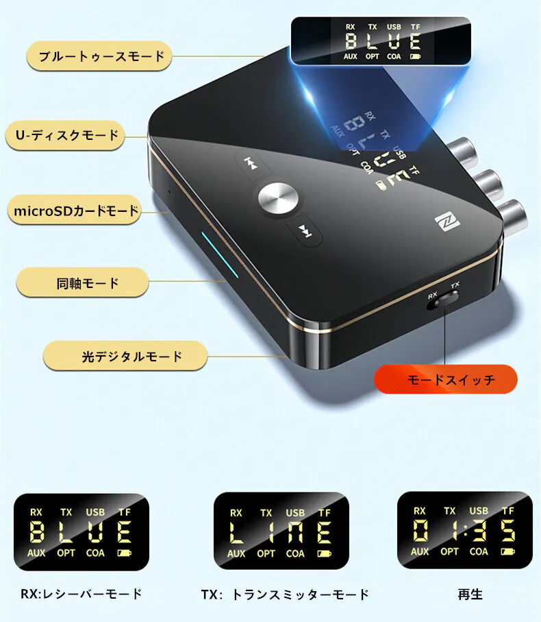 入力接続方式:光デジタルケーブル接続、同軸ケーブル接続、3.5mmオーディオケーブル接続、RCA変換ケーブル接続、TFカード、U-ディスク