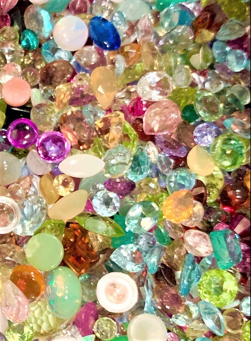 ルビー・サファイア・エメラルド・ローズクオーツ・シトリン・キュービックジルコニア・ペリドット・アメジスト・クオーツ・オパール・ファイアオパール・ウォーターオパール・アパタイト・ターコイズ・珊瑚・オニキス・アンデシン・カルセドニー・アイオライト・レッドアゲート・シェル・レモンクオーツ・ヒスイ・カラーサファイア・ラリマー・水晶・ジルコン・ガーネット・ローズクオーツ・ブルートパーズ・フローライト・ダンビュライト・ムーンストーン・ユニカイト・ラピスラズリ・ラブラドライト・プレナイト・ルチルクオーツ・ミスティックトパーズ・スモーキークオーツ・スーパーセブン・合成宝石等幅広いルースを当社のお任せでたっぷり詰めこみました♪