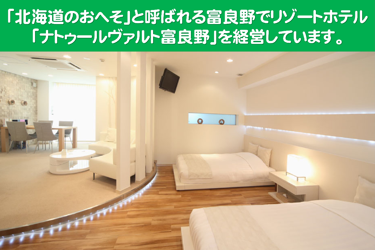 北海道のど真ん中、富良野でリゾートホテル「ナトゥールヴァルト富良野」「ふらの家本町酒場」を運営しています、北海道ホテル&リゾートと申します。