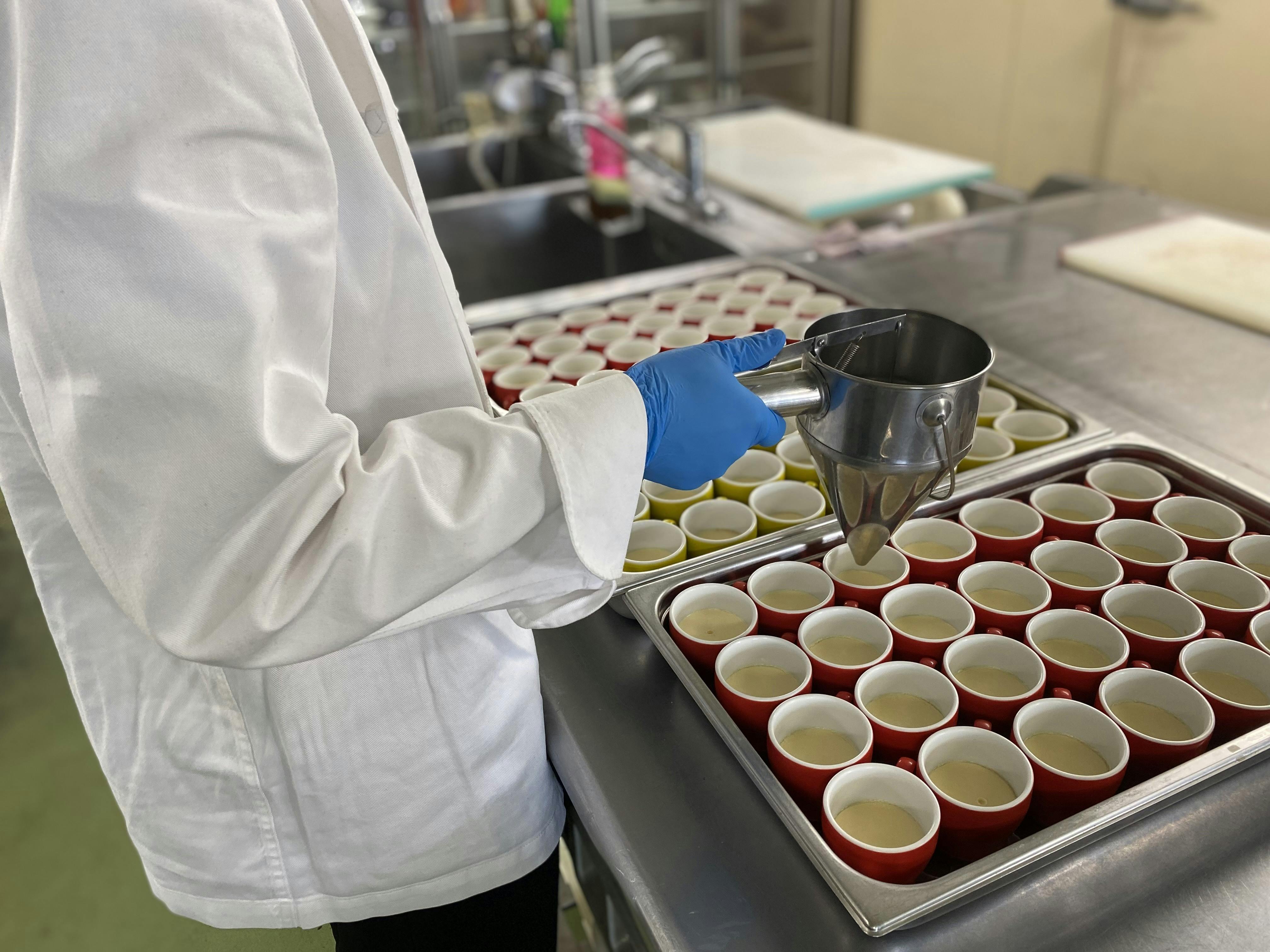 そもそもなぜプリンなのかというと、ナトゥールヴァルト富良野では長年毎日無料のスイーツバイキングを提供させていただいておりまして、その中でもプリンは特にお客様から評判が良く、歴代のホテルシェフ達が改良を重ねてきた自慢の一品です。今回は我々が積み上げてきたプリンをもとに、2種類の「富良野の究極のプリン」をスタッフ一同で様々な議論を重ね、材料、製法などを見直し、作り上げたいと考えております。いくつかこだわりのポイントをご紹介させていただきます。