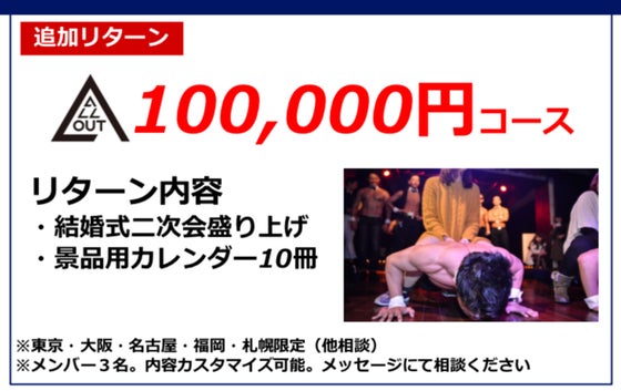 「結婚式二次会を筋肉紳士が圧倒的に盛り上げる」リターンを追加致しました。