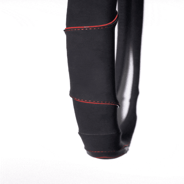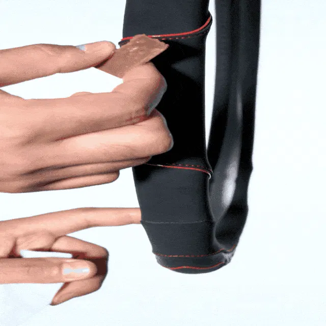柔軟な革素材としっかりしたゴムの素材を組み合わせることで、着脱は簡単に行えるような設計を実現しました。