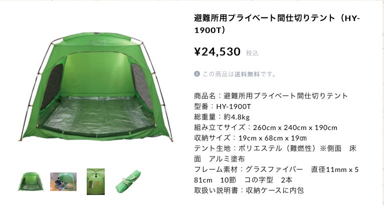 ・避難時の雨よけのテント※達成金額により購入金額は異なります。写真は参考資料として