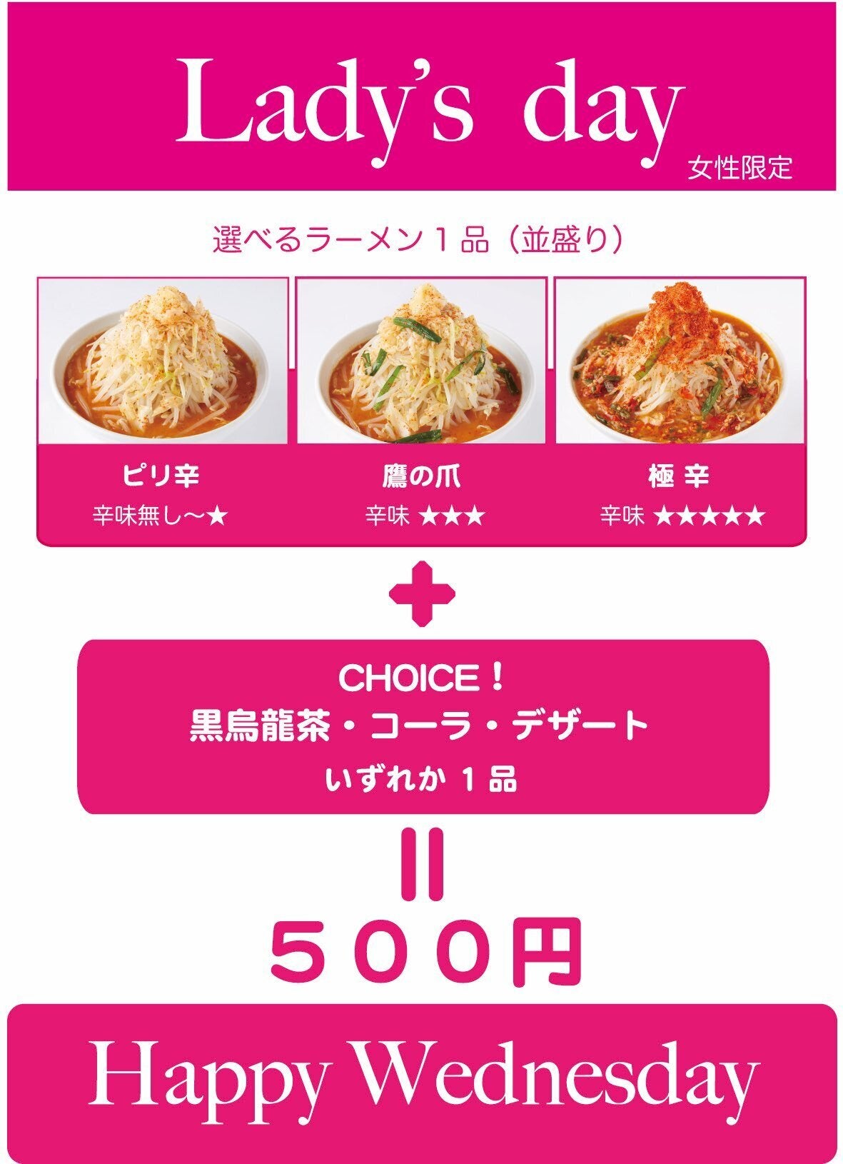 毎週水曜日はレディースデイ