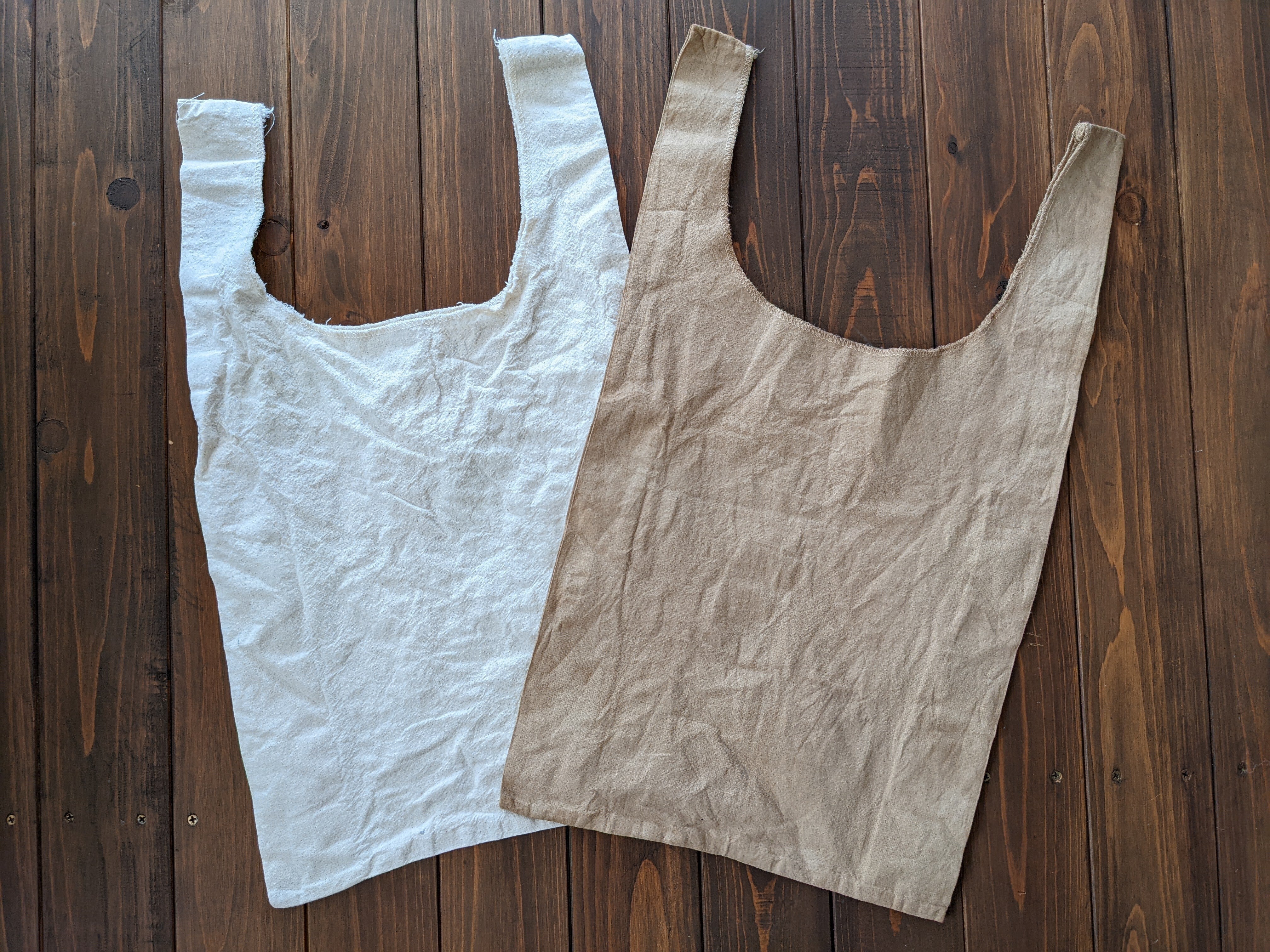 リターンでお届けする、オリジナルエコバッグの素材が決まりました。コットン100%で無漂白の環境に優しいエコな生地を使用しています。形状は、マチ付きで使い易いマルシェバッグを採用しました。厚手の5オンス生地なので、耐久性も高く、普段使いのエコバックとして、末長くお使い頂けると思います。染める前の製品サイズは、本体/約W30cm×H36cm(持ち手含むH53cm) 折りたたみマチ/約10cmとなっていますが、無漂白の素材を使用していますので、染め上げた後の仕上がりサイズは、全体的に2cm程度縮みますので、予めご了承下さい。