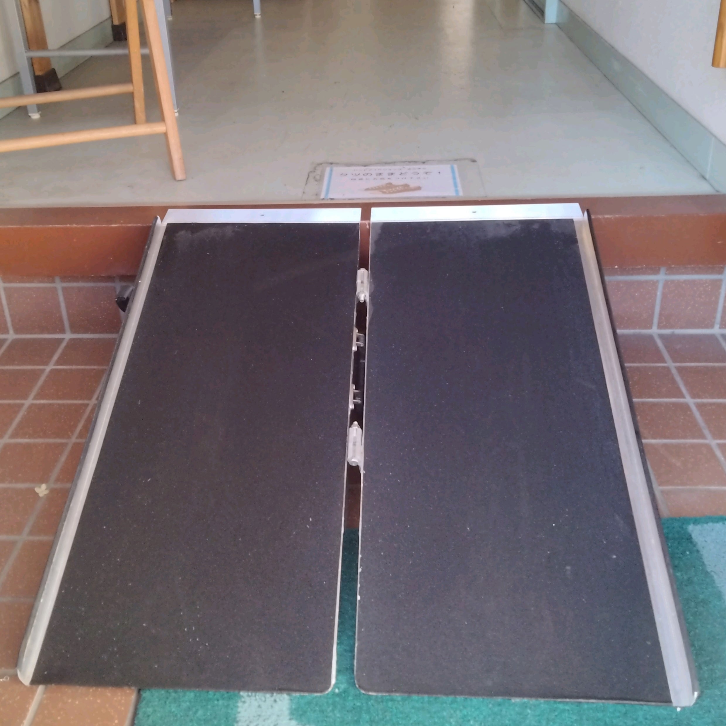 玄関の幅はクリアしましたが、2箇所の段差は大きく、スロープですと角度がかなり急になってしまい、通常の通行に支障が出てしまう為、着脱スロープの設置となりました。