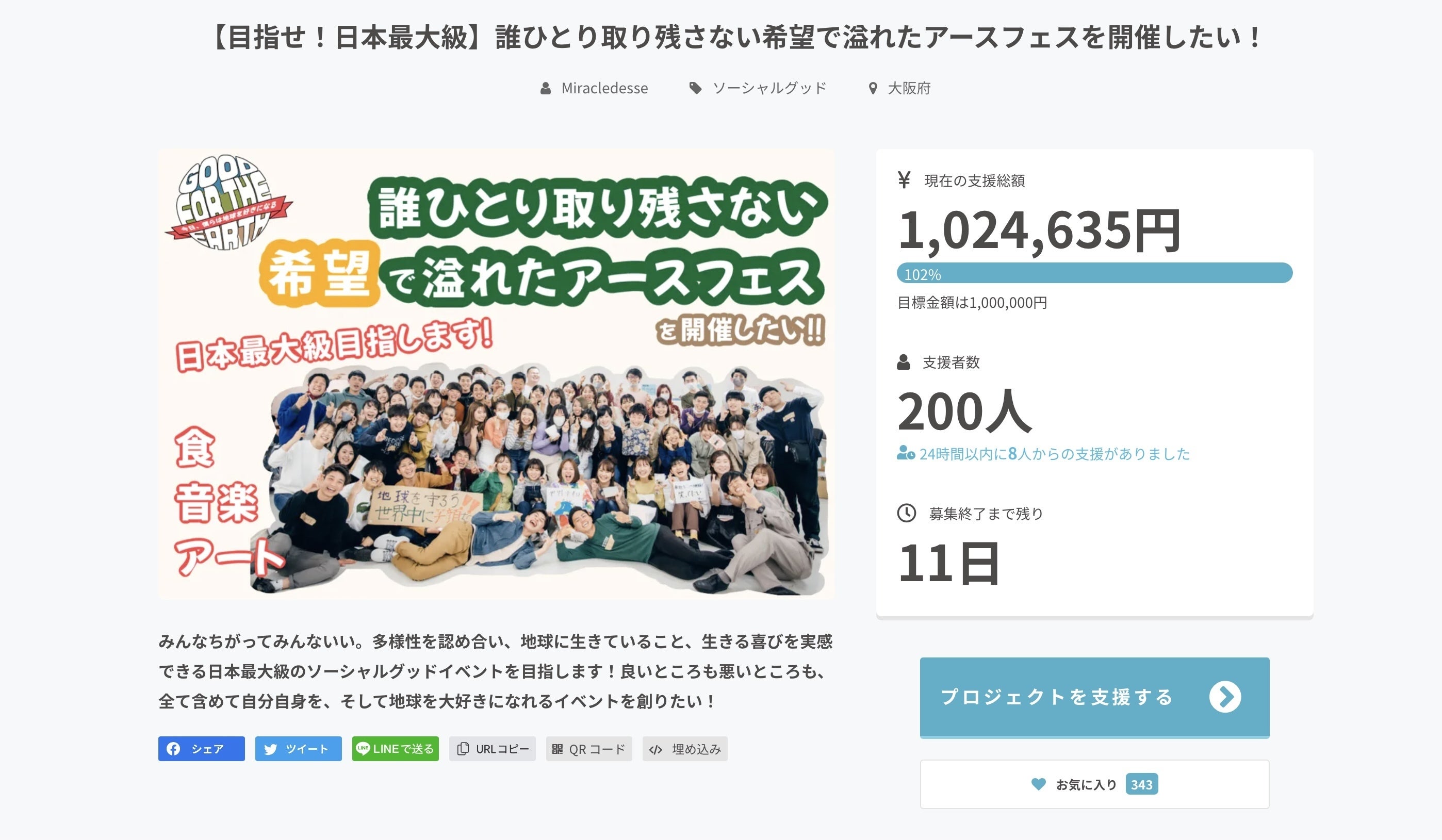 昨日、募集終了まで残り11日のタイミングで目標としていた100万円に到達しました!