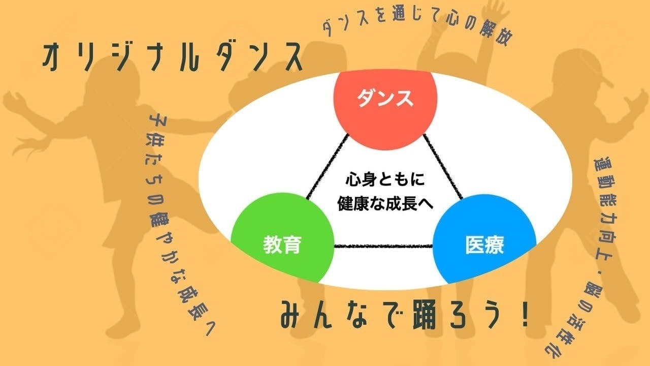 そして、左右非対称な動きをすることで、脳の活性化にも寄与する考え、その効果を最大限に活用した障がいの有無問わず、みんなで踊れる、オリジナルダンスの制作を行い、学校教育に取り入れる活動を行います。