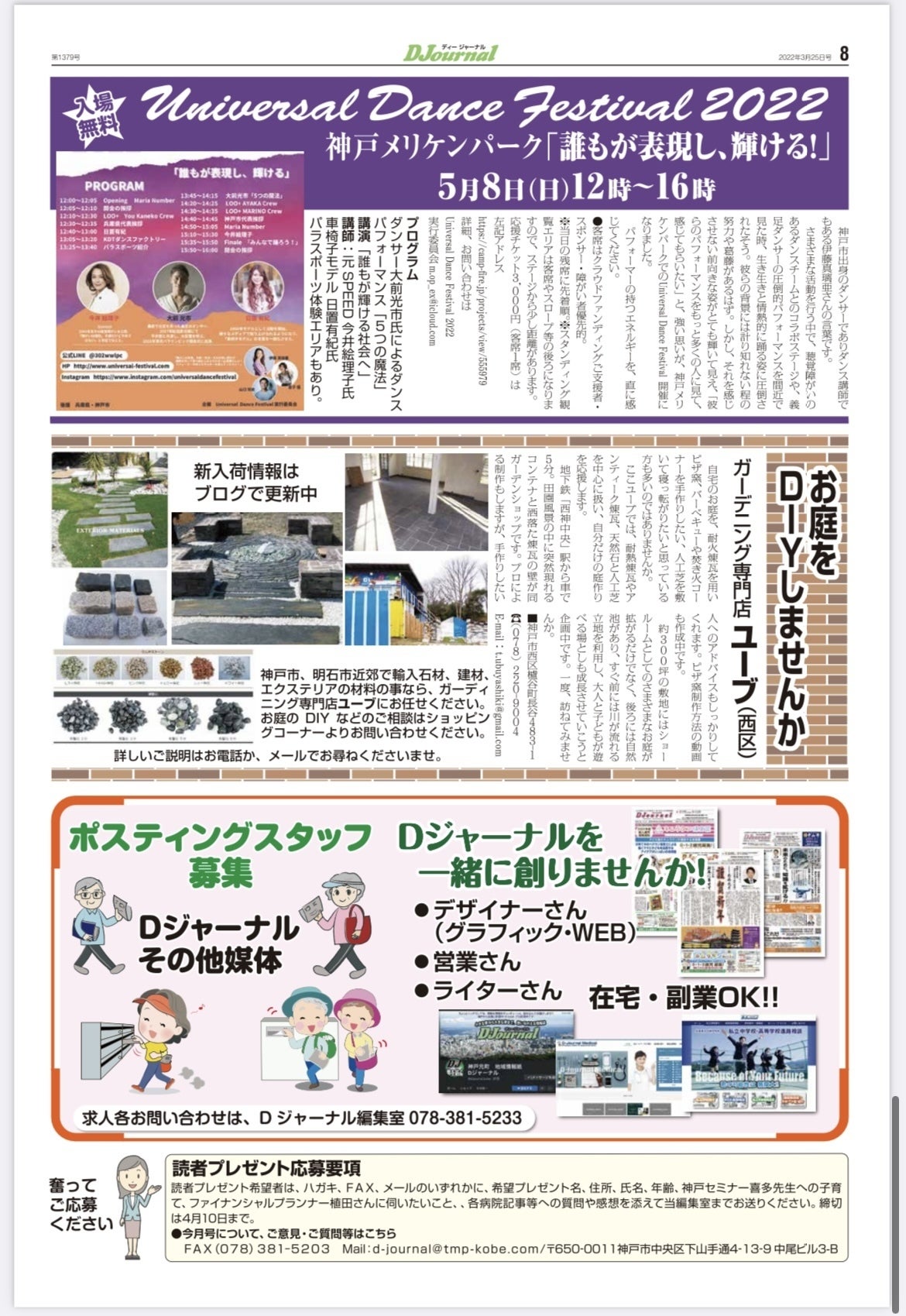 2022/04/03 12:07Dジャーナルさんがイベント紹介記事を掲載してくださりました♪ありがとうございます! もっと見る