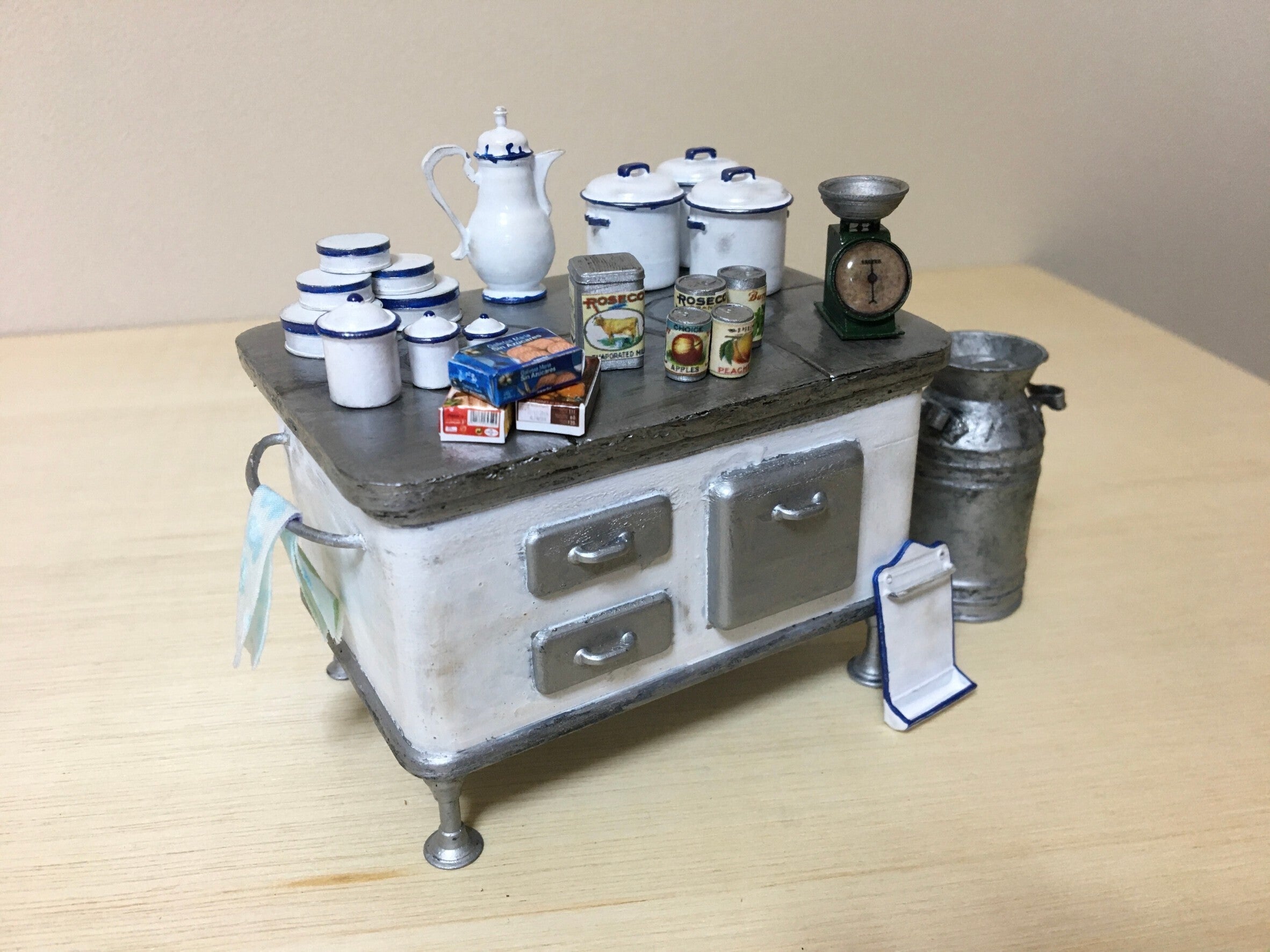 • ミニチュア教室でどんな作品が出来るか作例をご紹介します!これは、キッチン雑貨で北欧風なアンティーク小物です。初めての方でも出来るよう丁寧に色塗りのコツなど教えます♪ もっと見る
