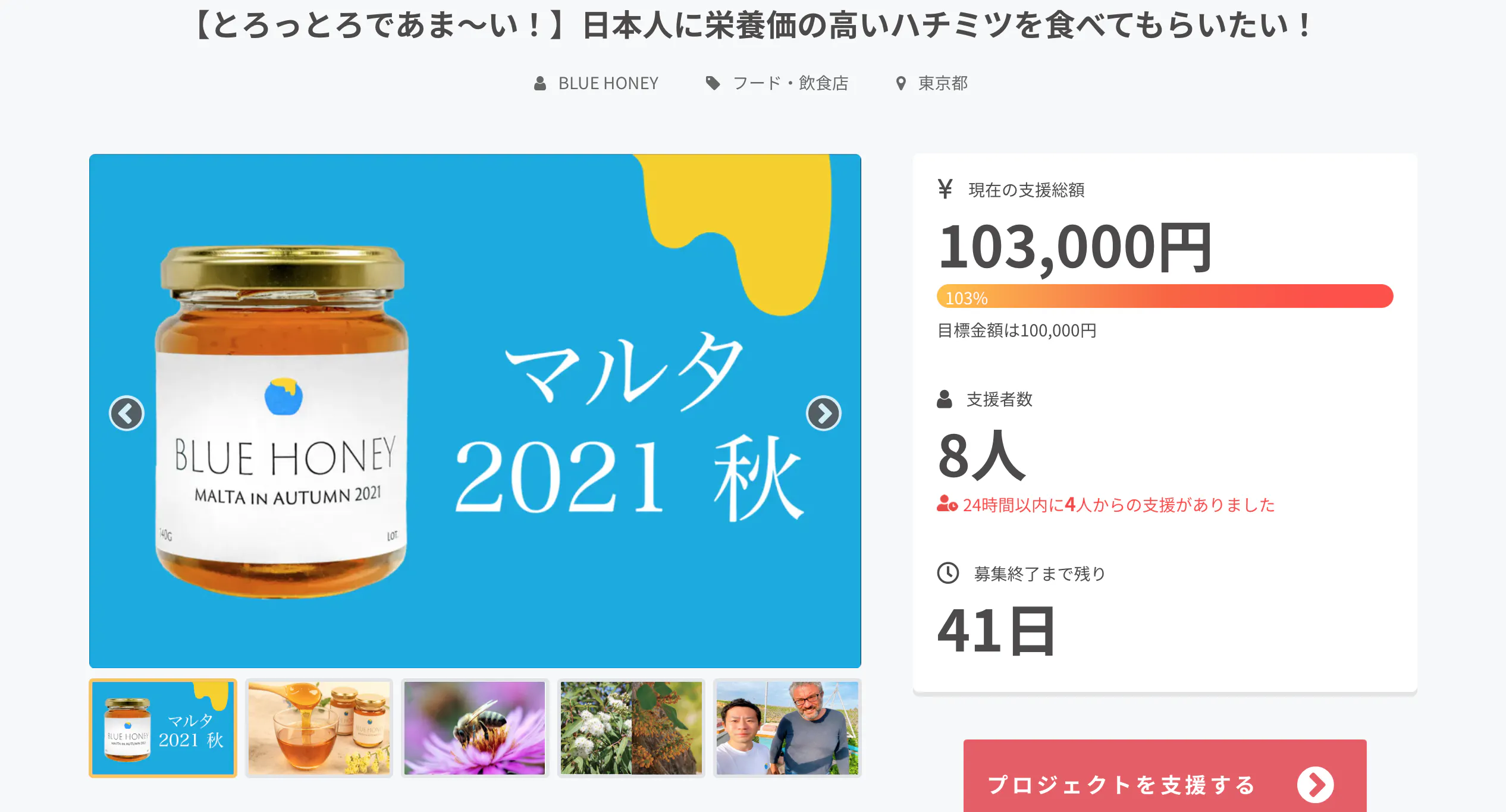 ブルーハニーの山田です!皆様のご支援のおかげで初回目標10万円を達成することができました!本当にありがとうございます!