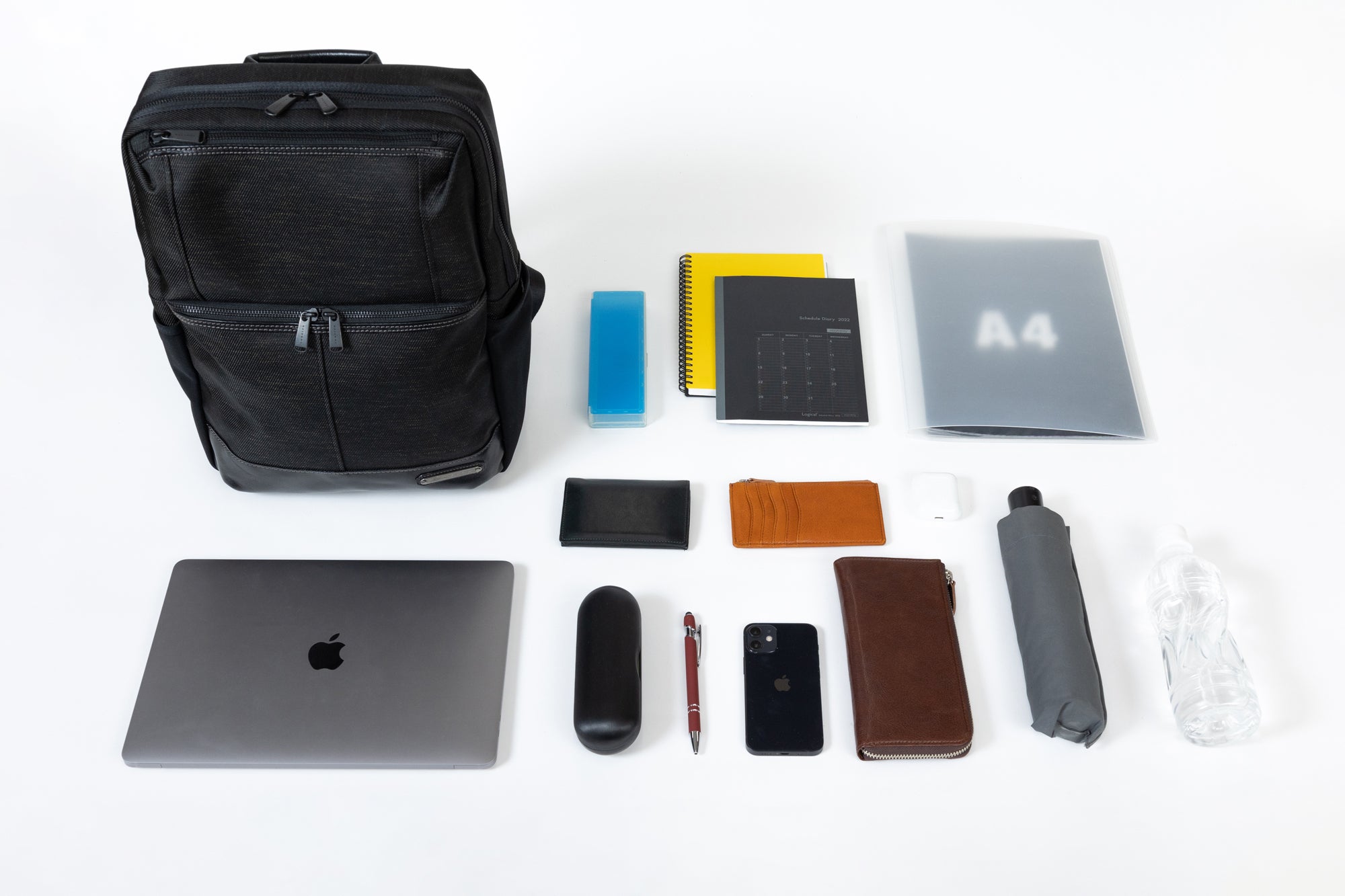ノートやペンケース、PC機器などのガジェットに筆記用具、傘やペットボトルまでスッキリと収納可能です。