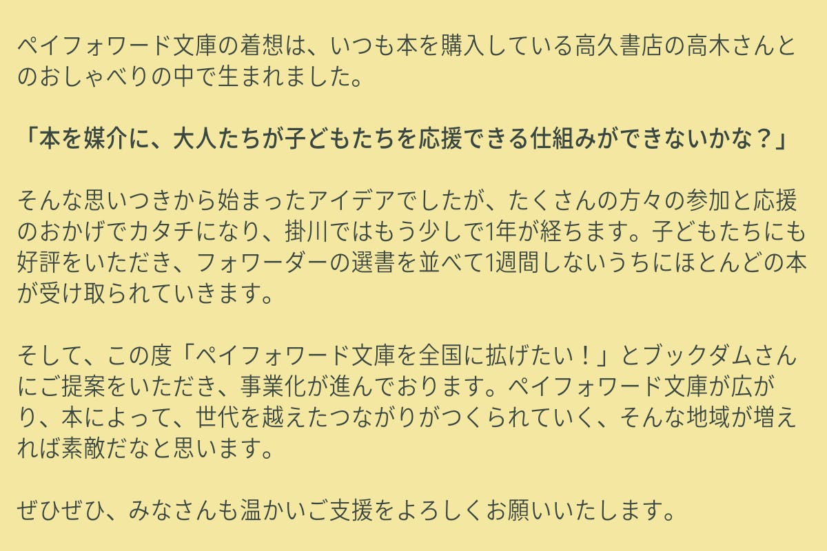 ペイフォワード文庫ホームページ:https://payitforward-library.jp