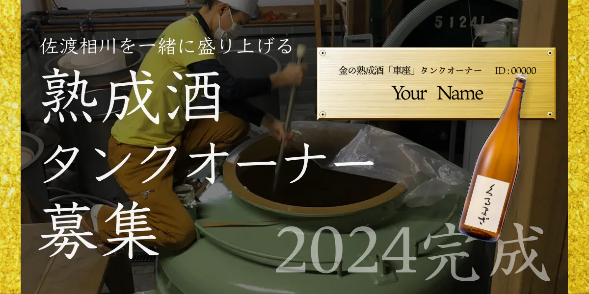 佐渡にゆかりがある方・そうでない方も、当プロジェクトで作り上げる「金の熟成酒 車座」を通じて、一緒にまちづくり、そして三年後に完成する熟成酒を楽しんでもらえればと思っています。