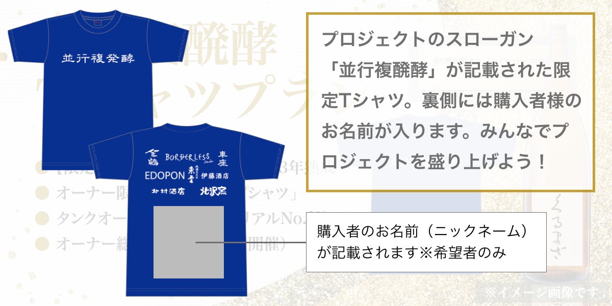 ◎熟成酒オーナー同士が醸される!金の熟成酒プロジェクト限定Tシャツを着て、一緒に盛り上がりましょう♪