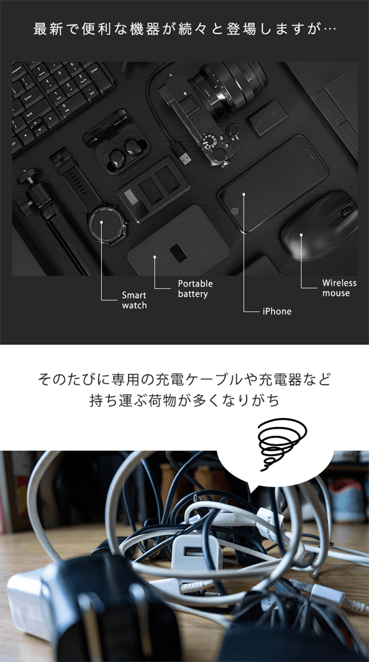 ●ノートPCや、スマホや、タブレット、それぞれ充電器を持ち歩かないといけなくて大変…