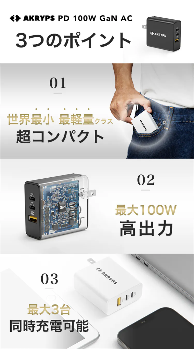 ■「AKRYPS PD 100W GaN AC」は、充電器の不満をすべて解決します!
