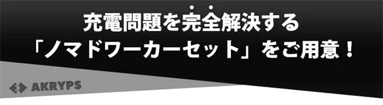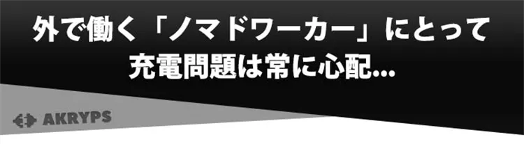 ここまでご説明したように、世界最小・最軽量クラスの「AKRYPS PD 100W GaN AC」は、荷物にならず、出張先や外出先でもすごく便利ですが、‟そもそもコンセントがないと使えない”ので、主に外で働かれる方には『コンセント探し』が悩みの種になってしまうかも...