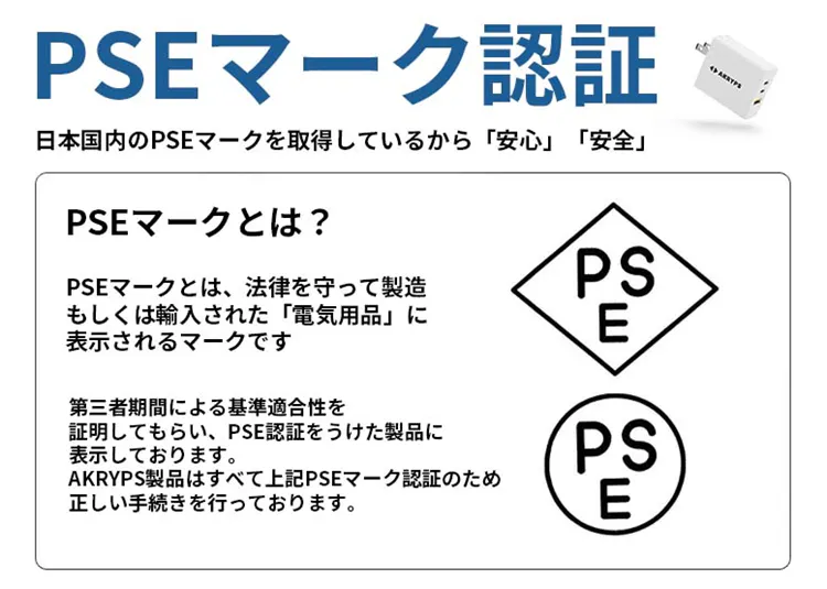 AKRYPS製品は、すべてPSEマークを取得していますので『安心』『安全』にご使用できる製品です。