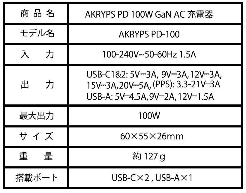 サイズ、ポート数、出力、どれをとっても万能な「AKRYPS PD 100W GaN AC」