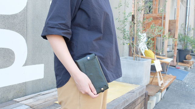 クラッチバッグ等小さなバッグにもすっぽり収まるサイズ。本革仕上げながらもゴツくなりすぎない上品な質感なので、女性にもご愛用いただけます。