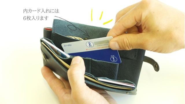 奥のカードポケットにあまり使わないカードを収納。6枚入ります。