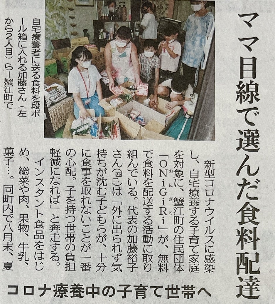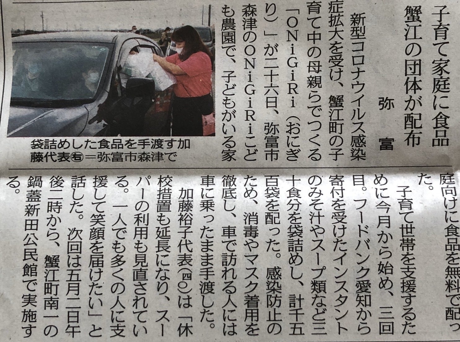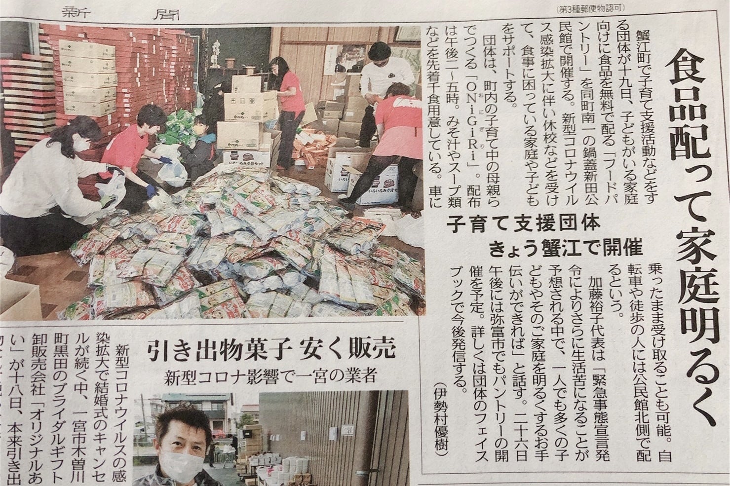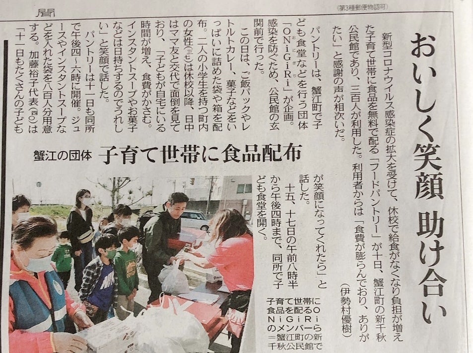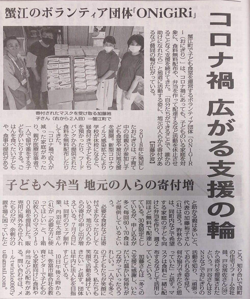 ONiGiRiの活動について、新聞紙面に掲載していただきました✨