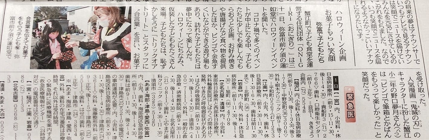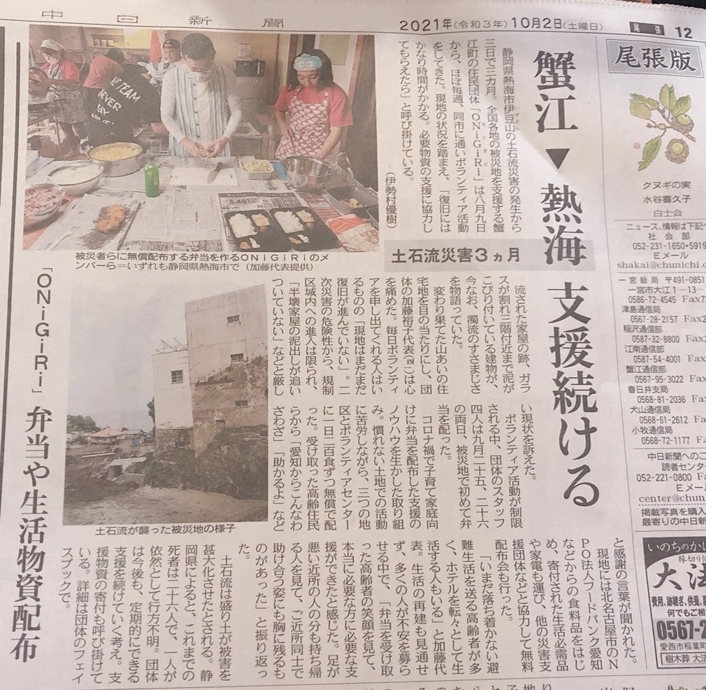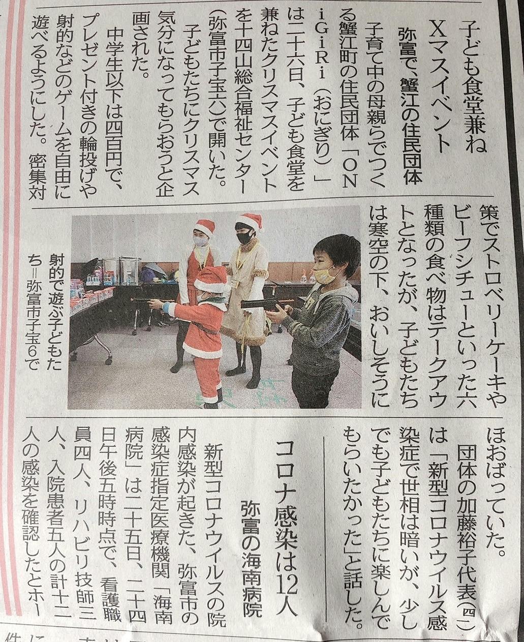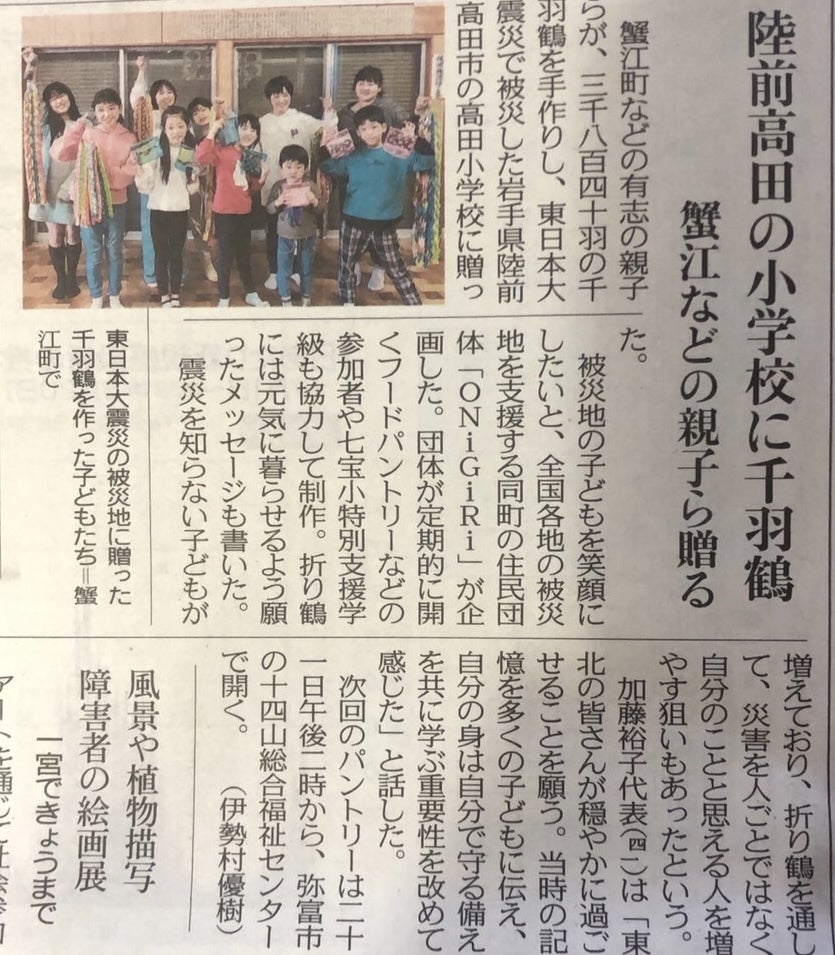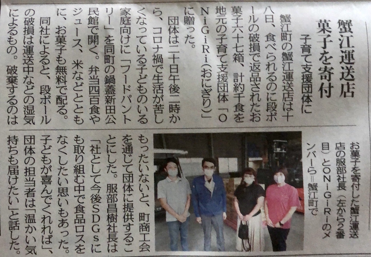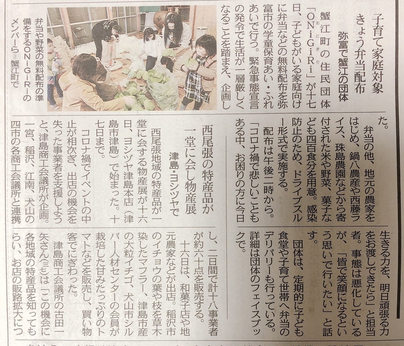 ONiGiRiの活動について、新聞紙面に掲載していただきました✨