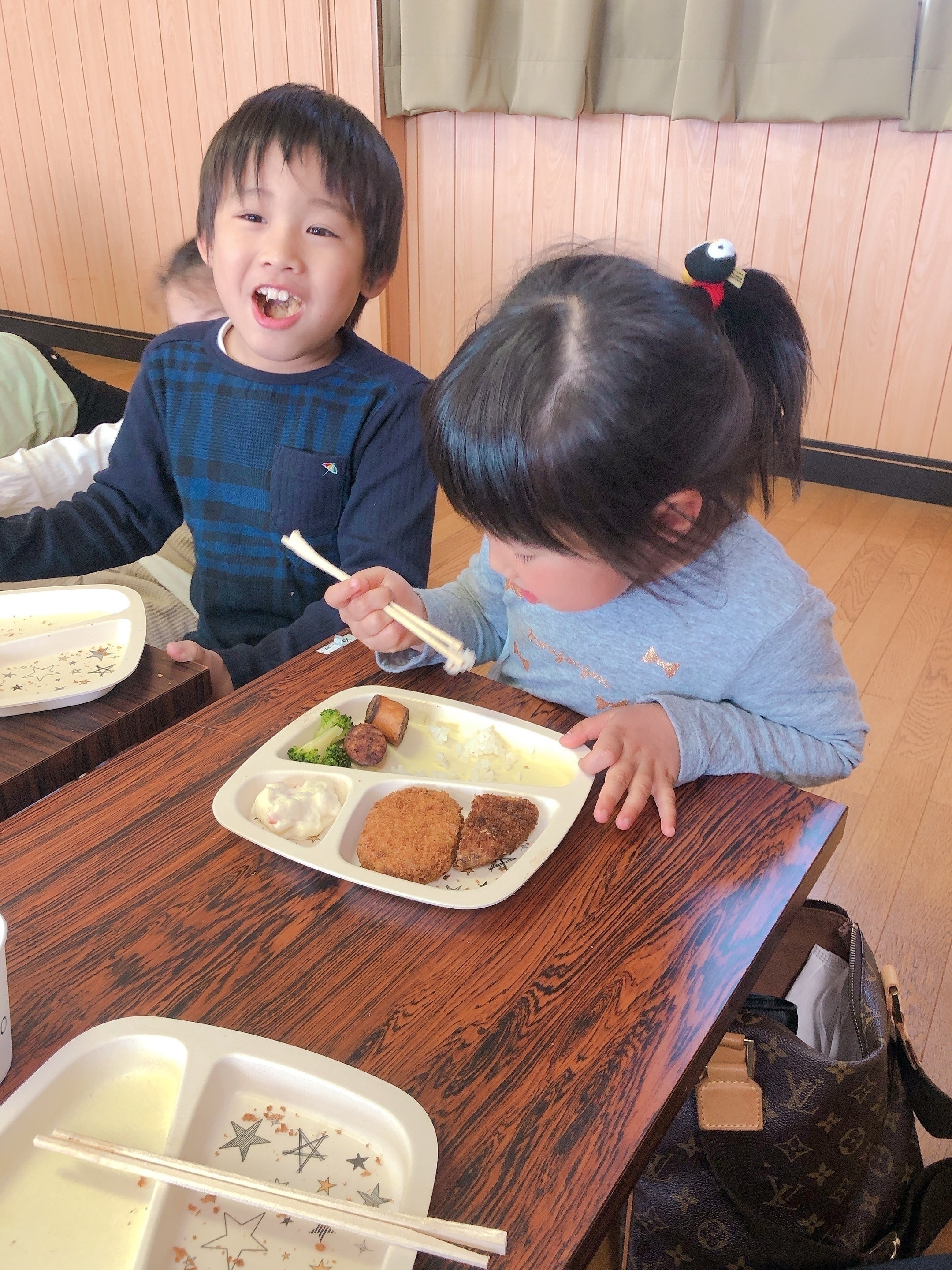 夜ご飯を食べて、お母さんお父さんのお迎えを待とう