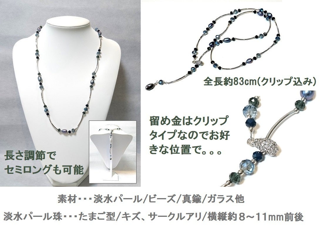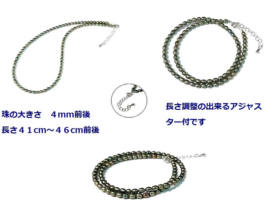◇バリエーションが広がるグリーンブラックカラーのベビーパールネックレス4mm前後