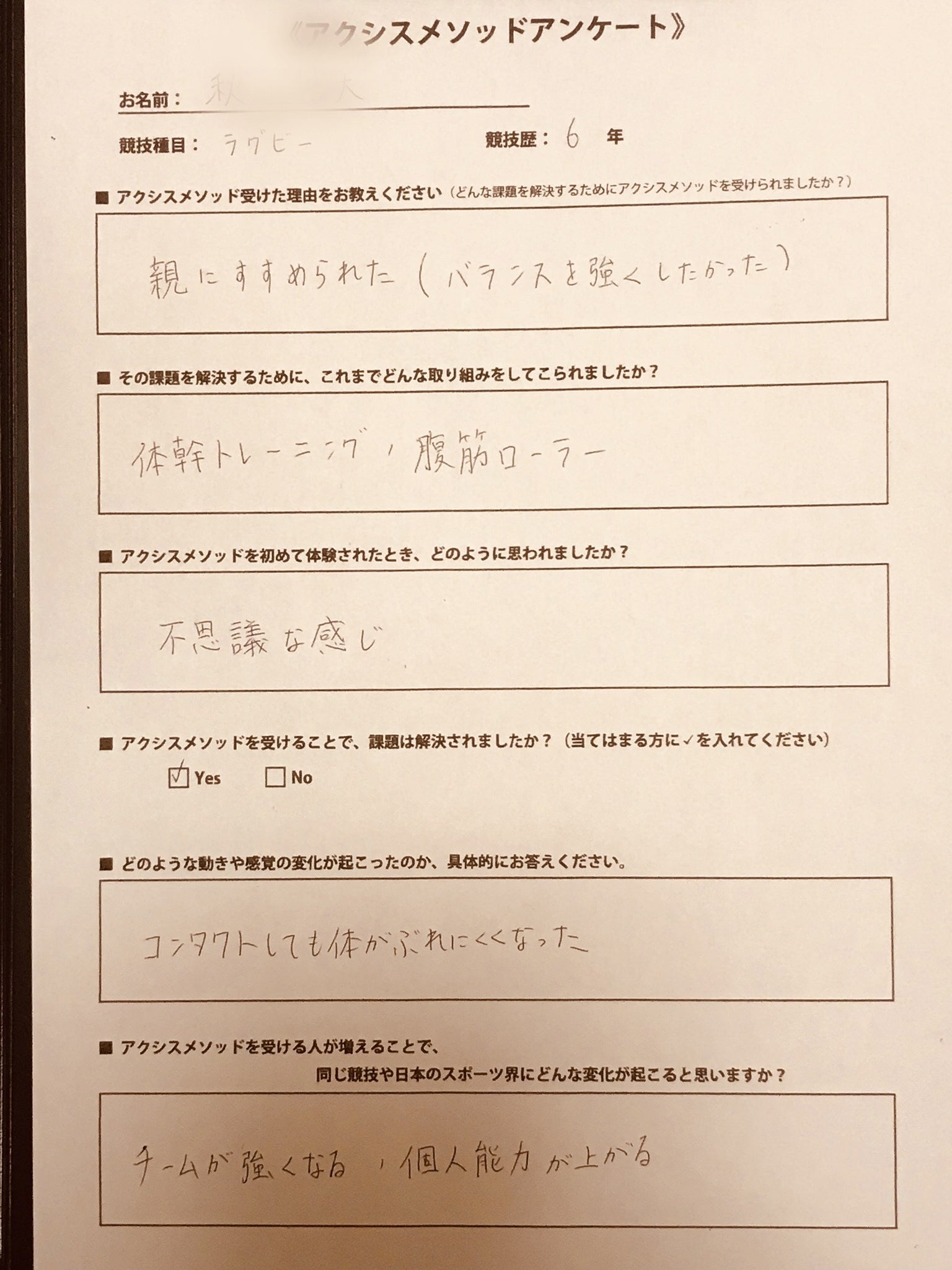 親に勧められてアクシスメソッドを受けに来てくれました。