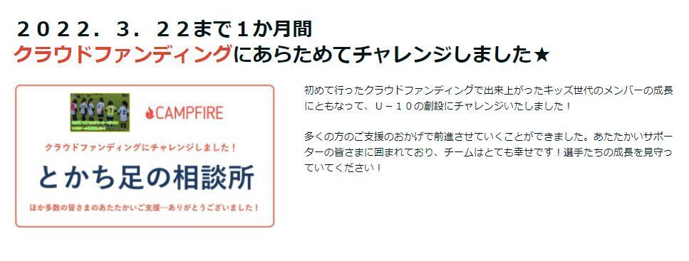 現在、U-10の活動と共にクラウドファンディングのリターンについてもすすめております。ひとつ紹介いたしますと、チームのホームページにご支援いただいた方のご氏名を掲示するリターンがございます。それについて、ホームページに昨夜から反映させていただきました。ほかリターンについては少々お待ちください。お届け予定の日程に合わせて取り組ませていただきます。【NEWS】今週末、初めての対外試合に挑みます★