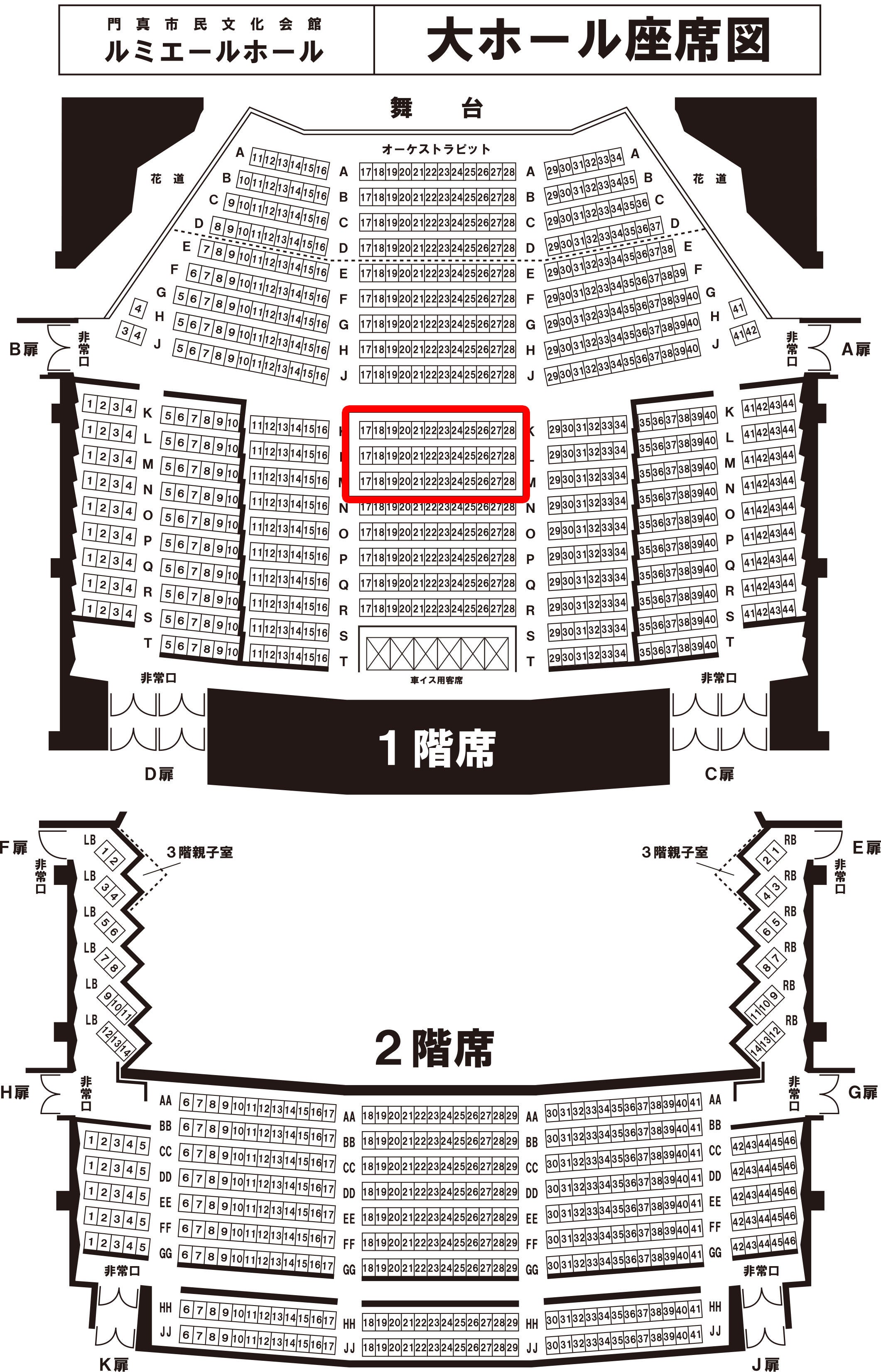 赤枠がプレミアム席になります