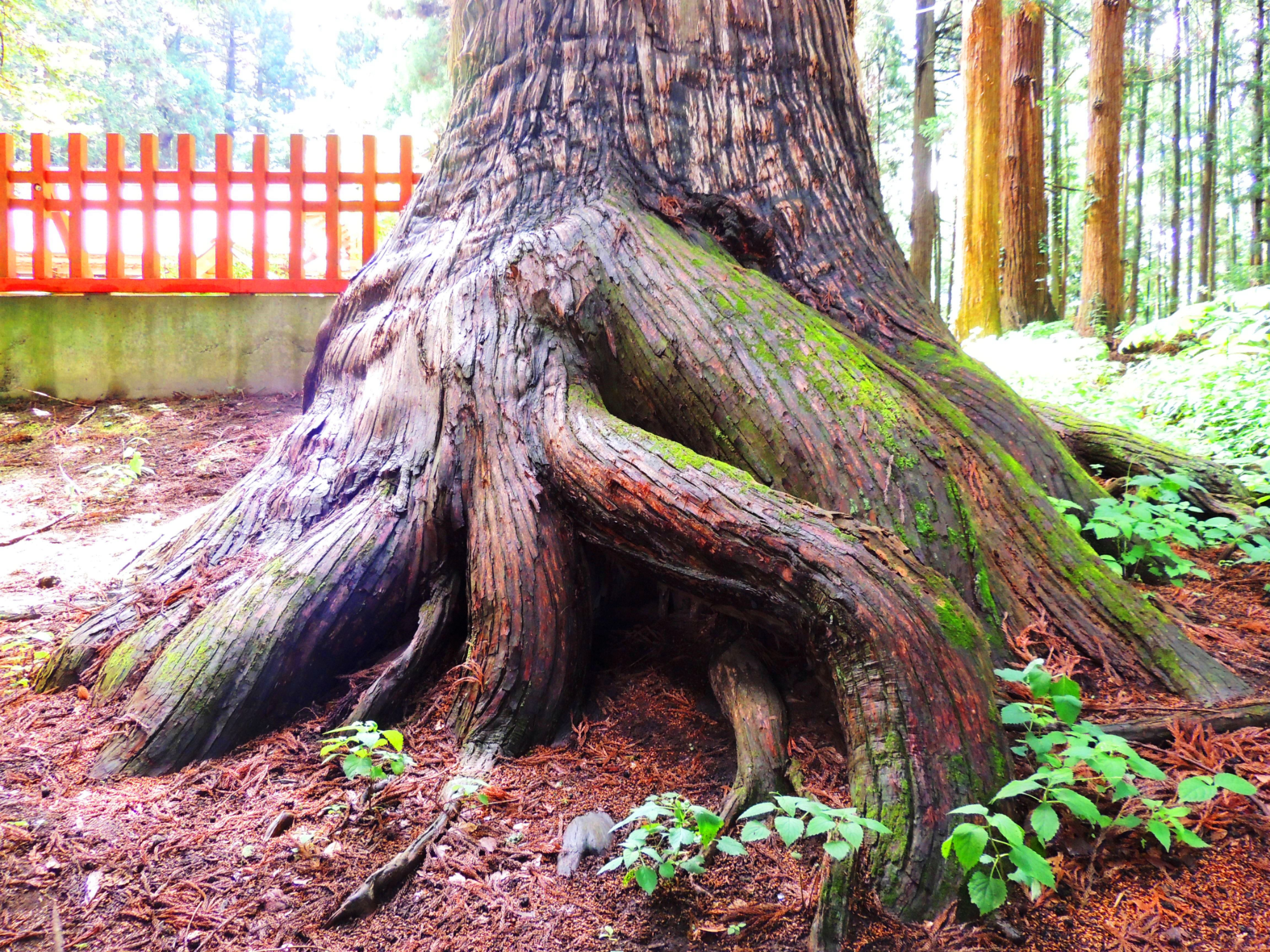 画像:鉾杉の周りにも折れた枝や枯れ葉が散乱
