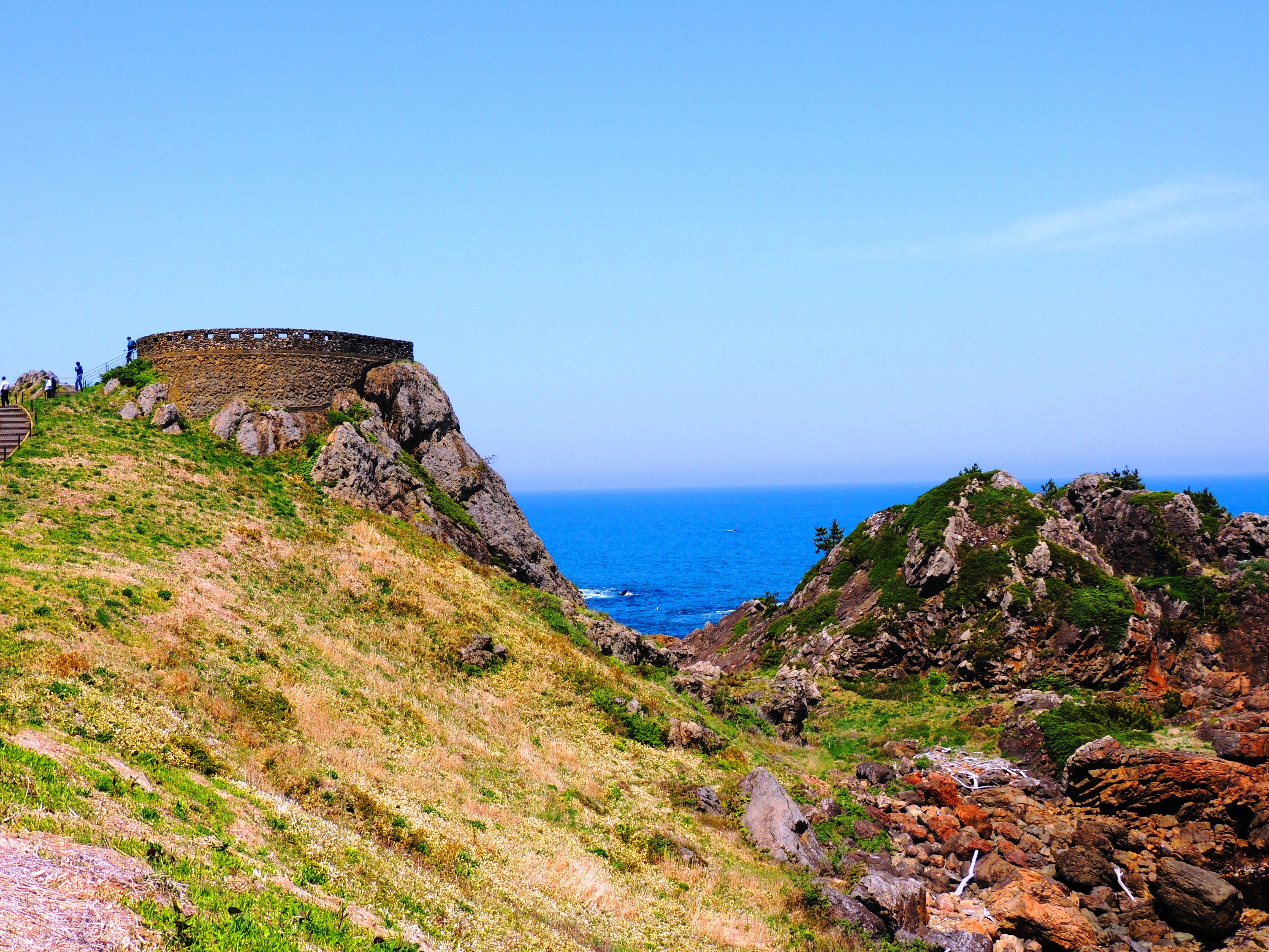 画像:鮫角灯台前の岬にある葦毛崎展望台。太平洋戦争末期には旧日本軍が軍事施設として使用していましたが、現在は展望台として一般開放されています。