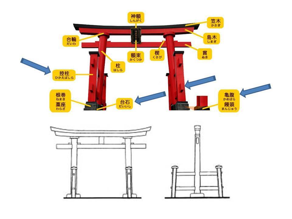 画像:両部鳥居の各部の名称