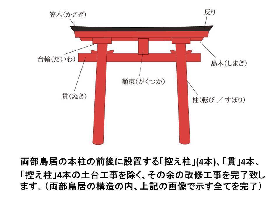 私どもは、一般的な高さ8mの木造の鳥居を再建するわけですが、 七崎神社復興整備第一期 事業 が、滞りなく 完了致します様、 一人でも多くの皆様方の、温かいご支援を宜しくお願い申し上げます。