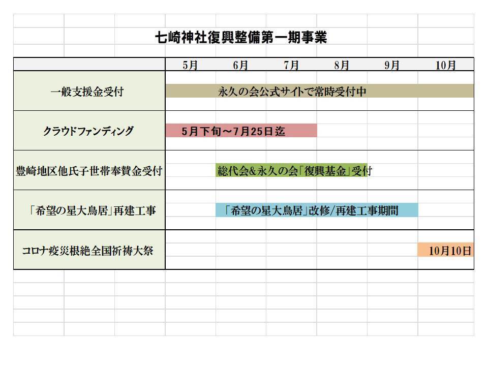 神社の復興整備事業は、本来であれば七崎神社の町民氏子たちの案件ですが、小さな町が抱える少子化や高齢化が進む豊崎町(686世帯=2017年度)の住民が抱える諸事情に、更に「本堂再建」や「新型コロナの猛威」など重くのしかかり、各世帯からの経済的支援については、暫くの間、猶予が必要とされています。