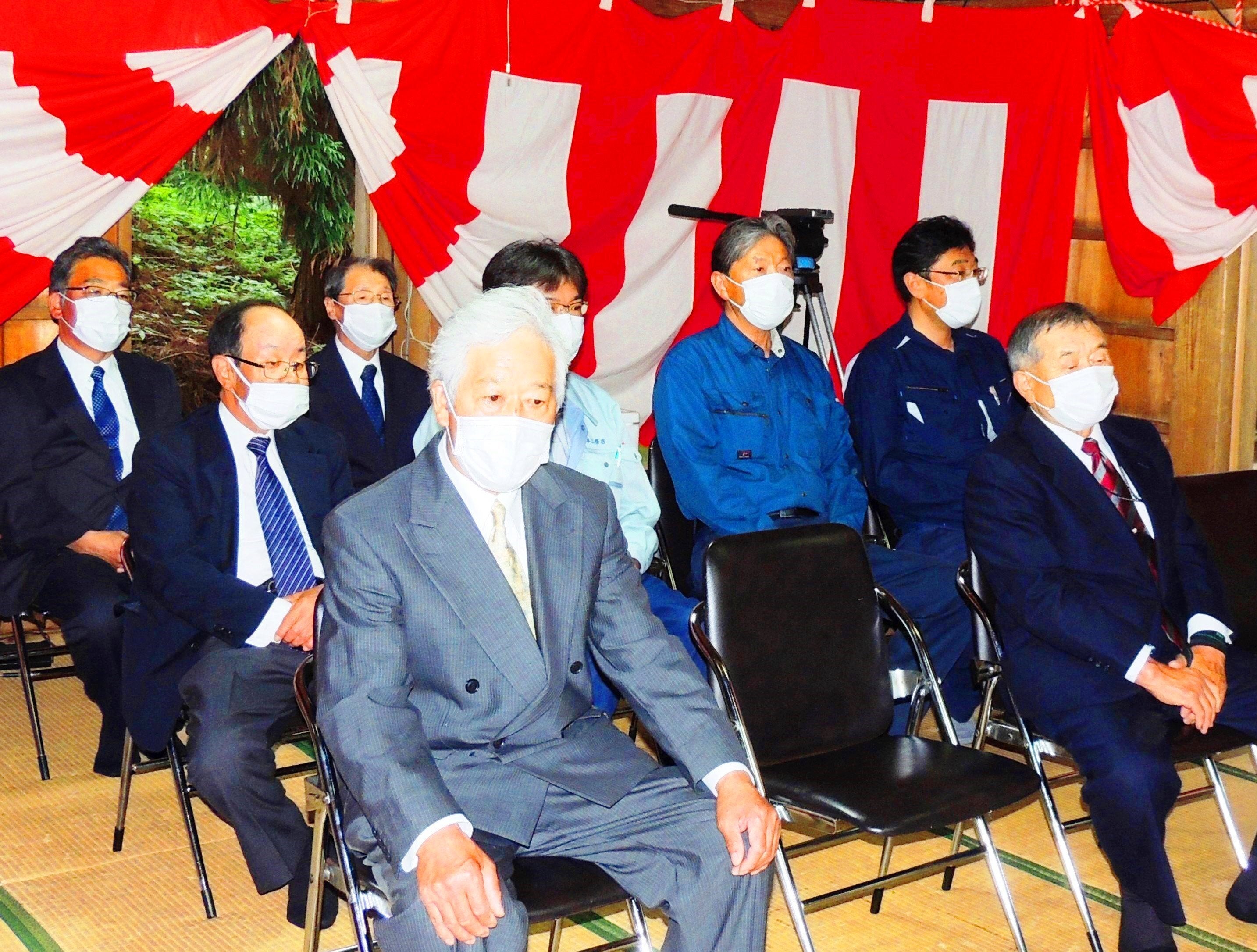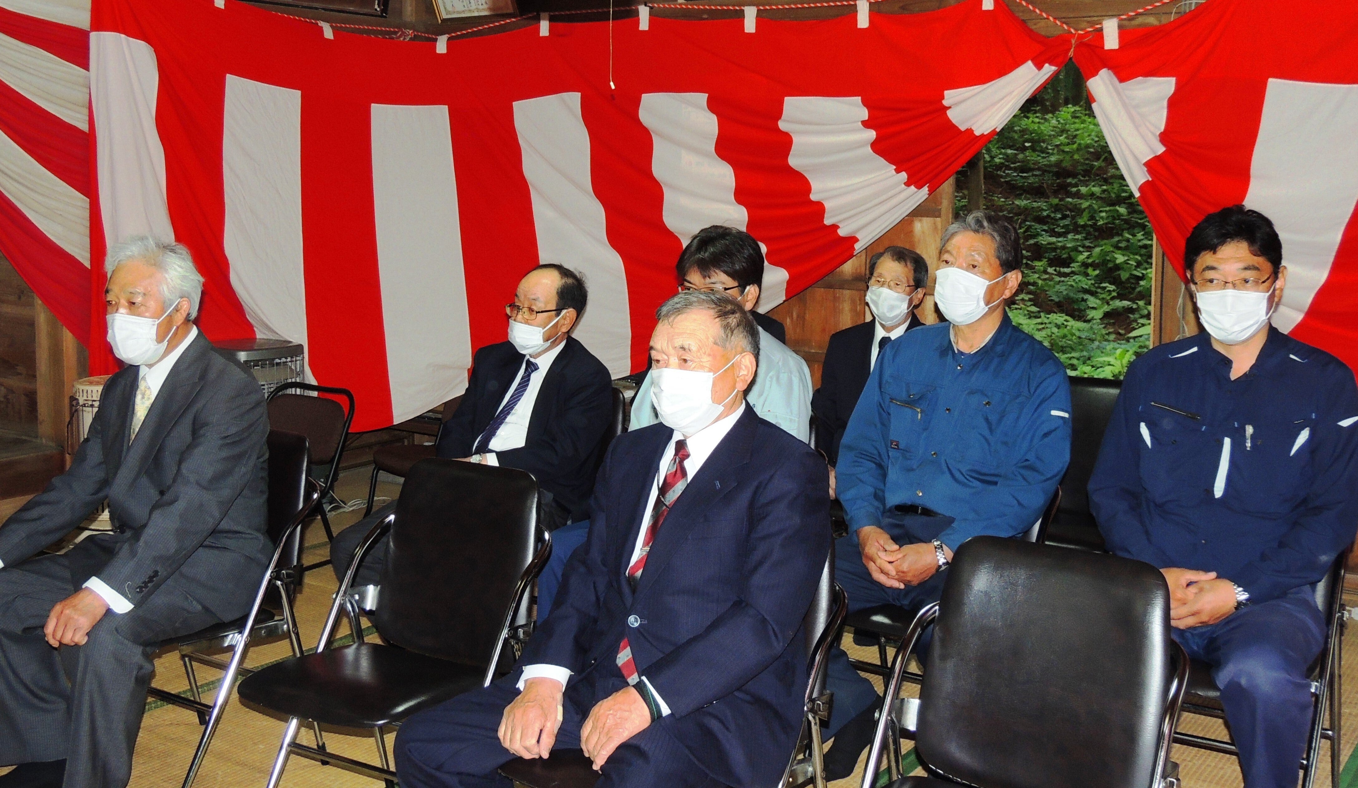 役員などが集合し復興祈願祭を行い、計画達成をご祭神に誓った。