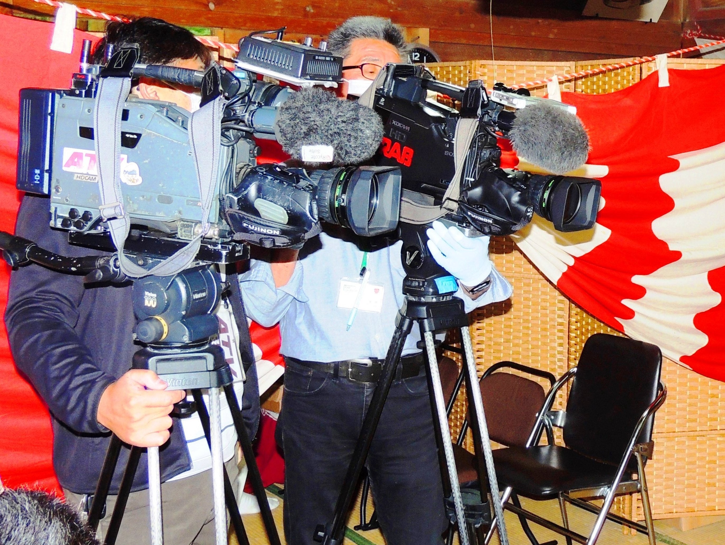 画像:ATV&RAB「七崎神社復興祈願祭」取材模様