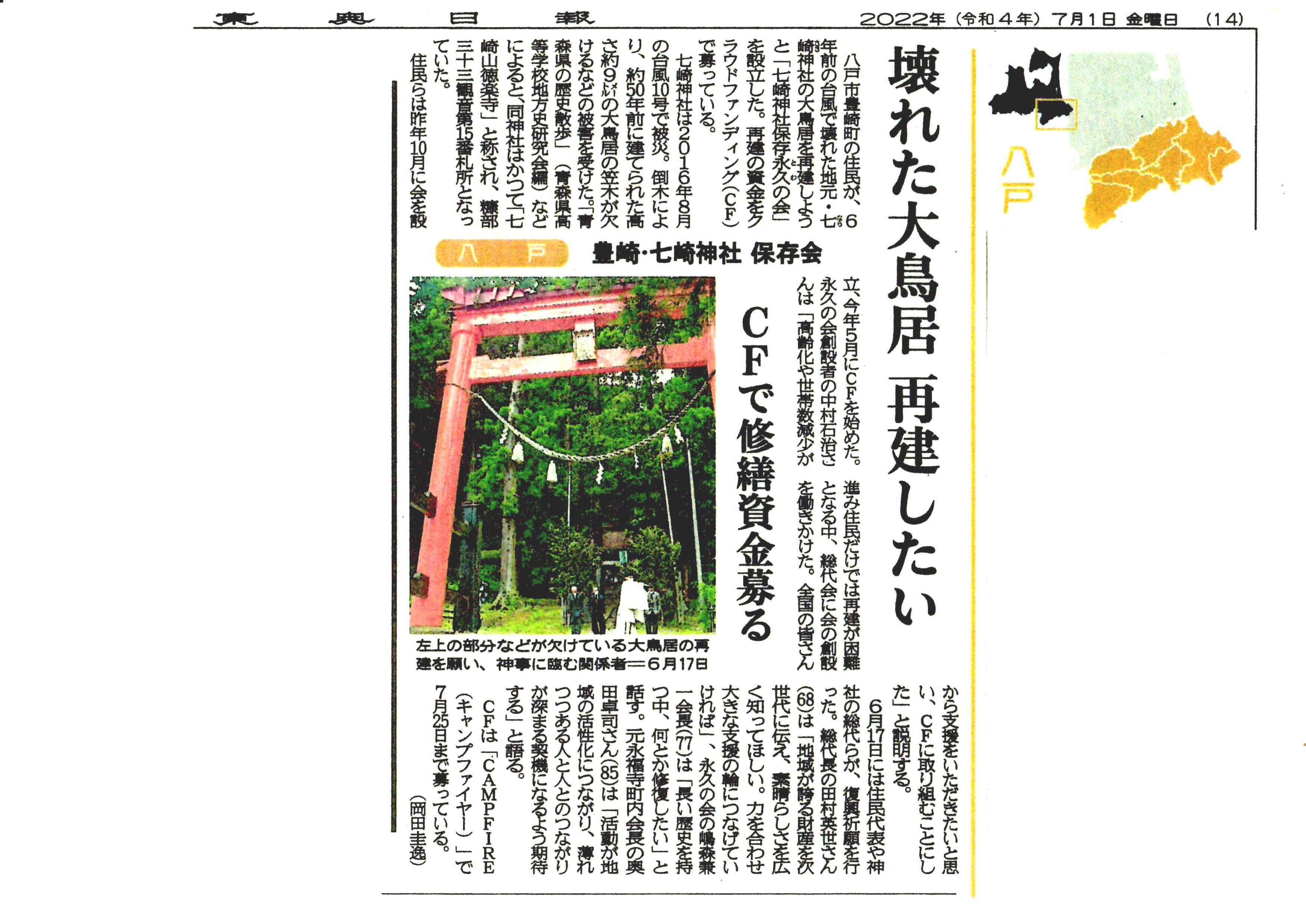 〇7月1日:東奥日報社報道記事を紹介